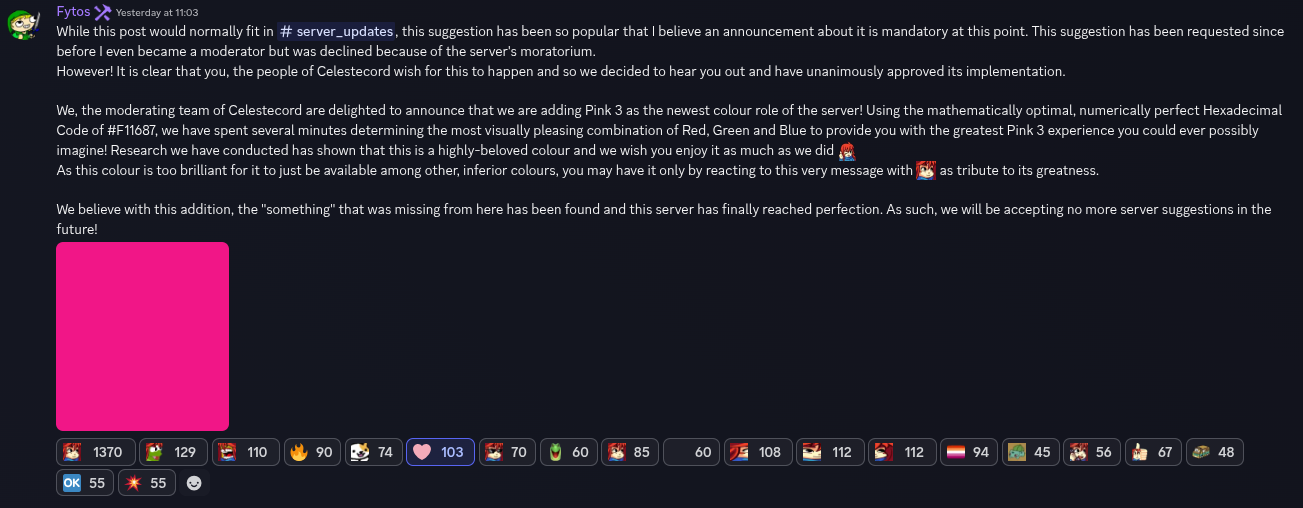 Pink 3 was implemented by the Defendant as an "April Fools" joke, on the 1st of April, 2026.
